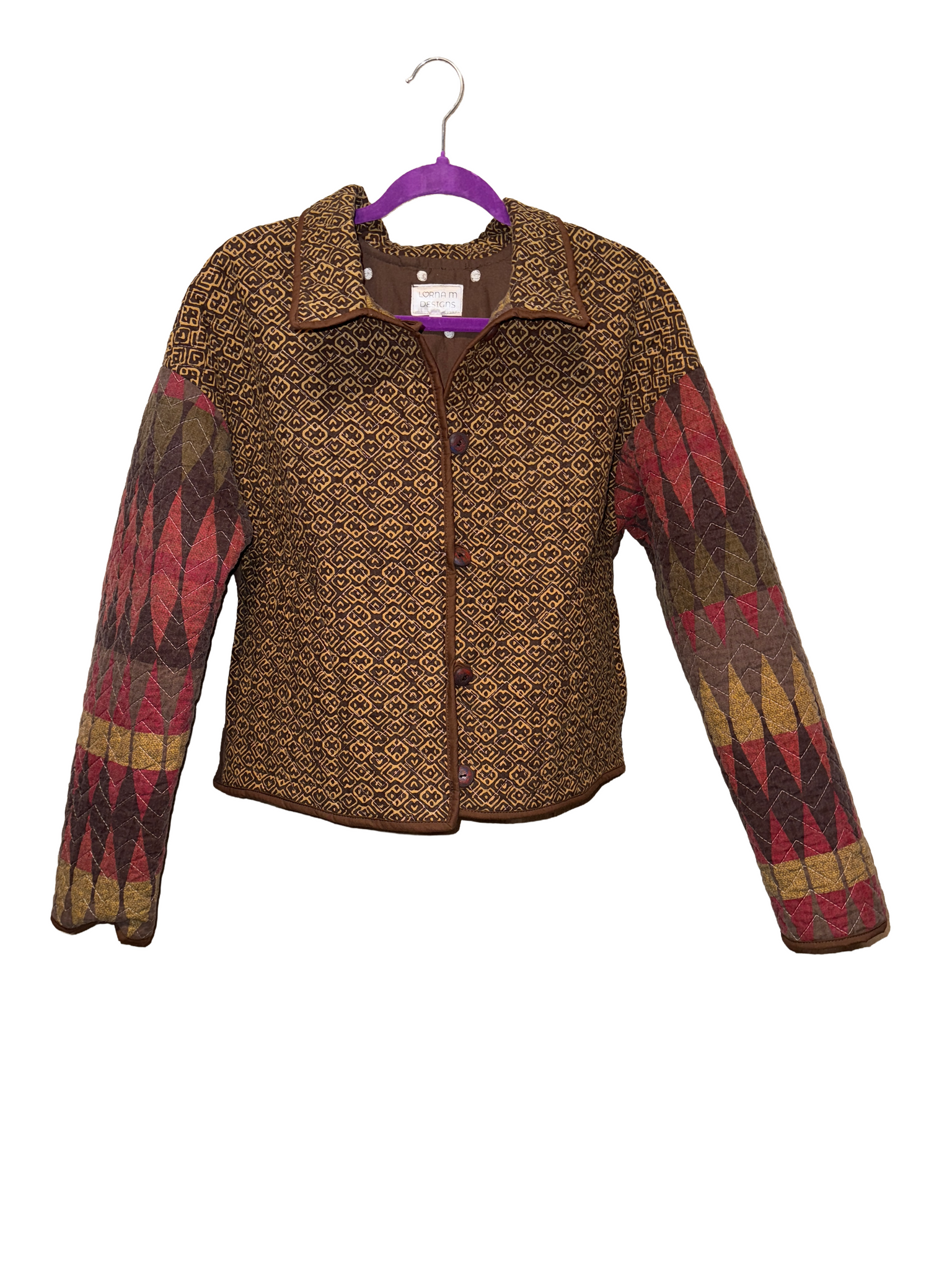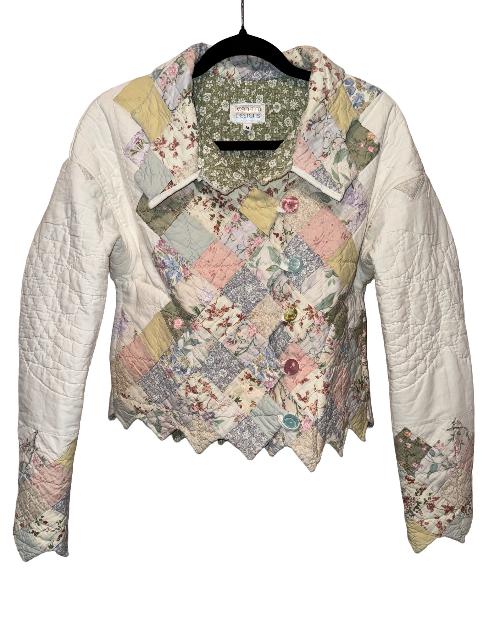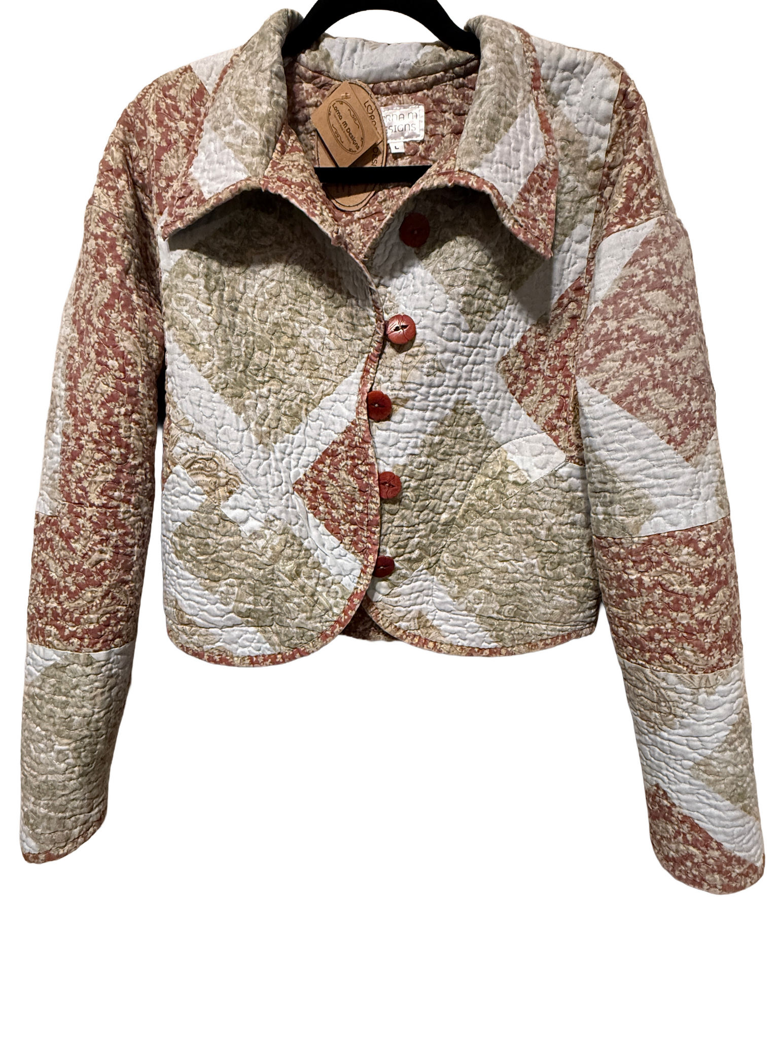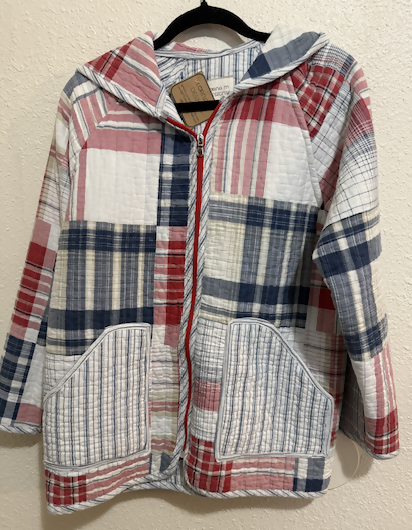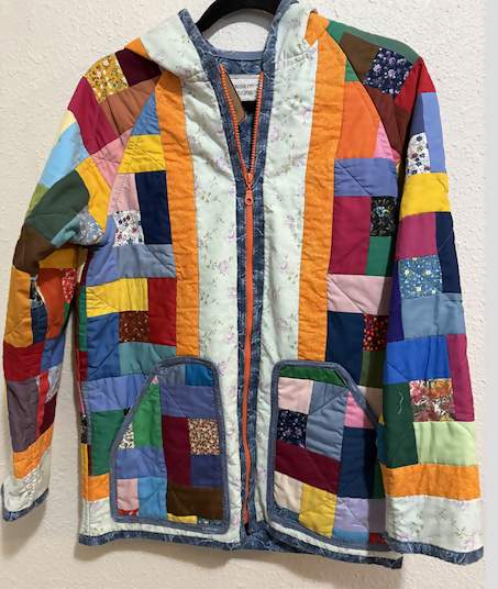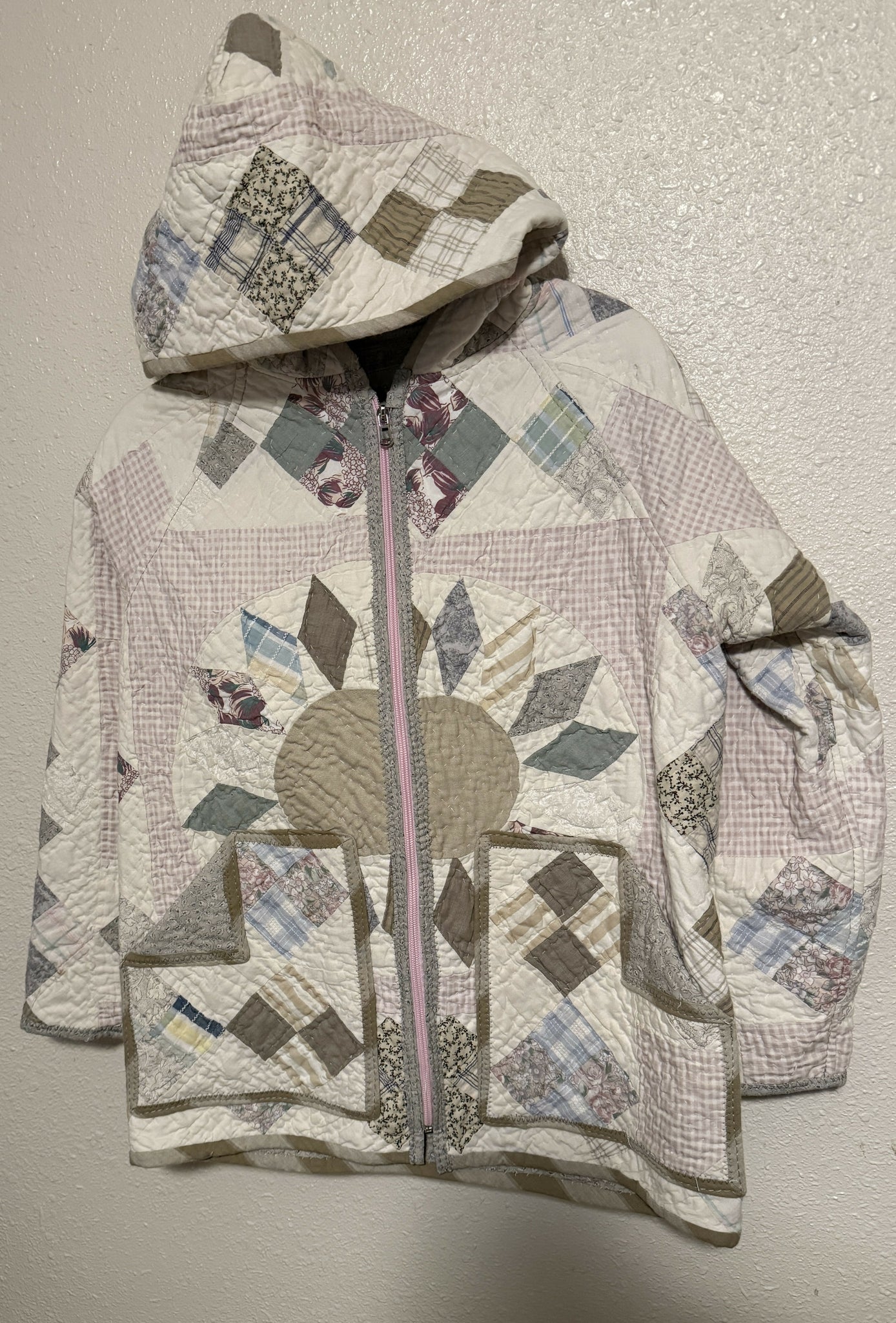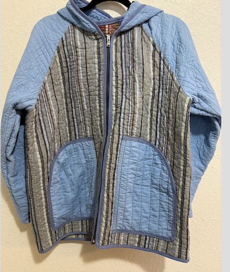 This cozy coat is made from a used quilt (handmade or commercial made). Designed with huge pockets, generous hood and attention to keeping the details of the original quilt.