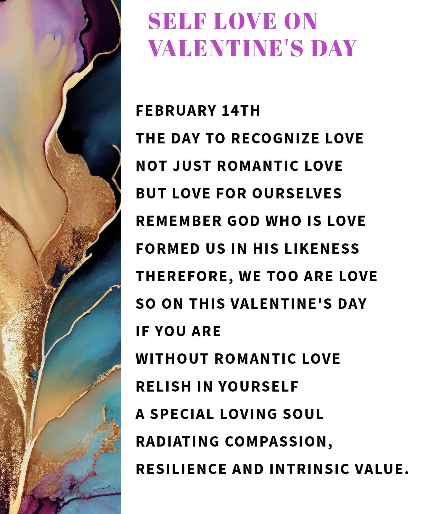 This 5x7 inch poetry card is a celebration of self love on Valentine’s Day. Each card is: