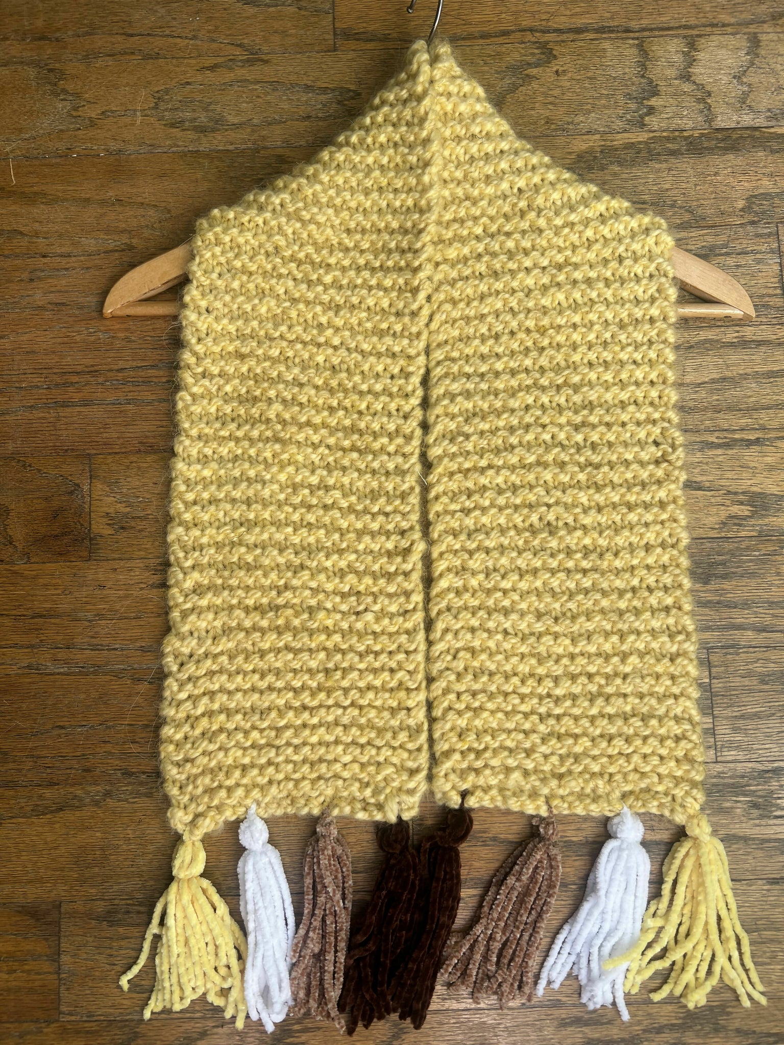 This soft lemony scarf is embellished with upcycled chenille to be the coziest one in your closet.