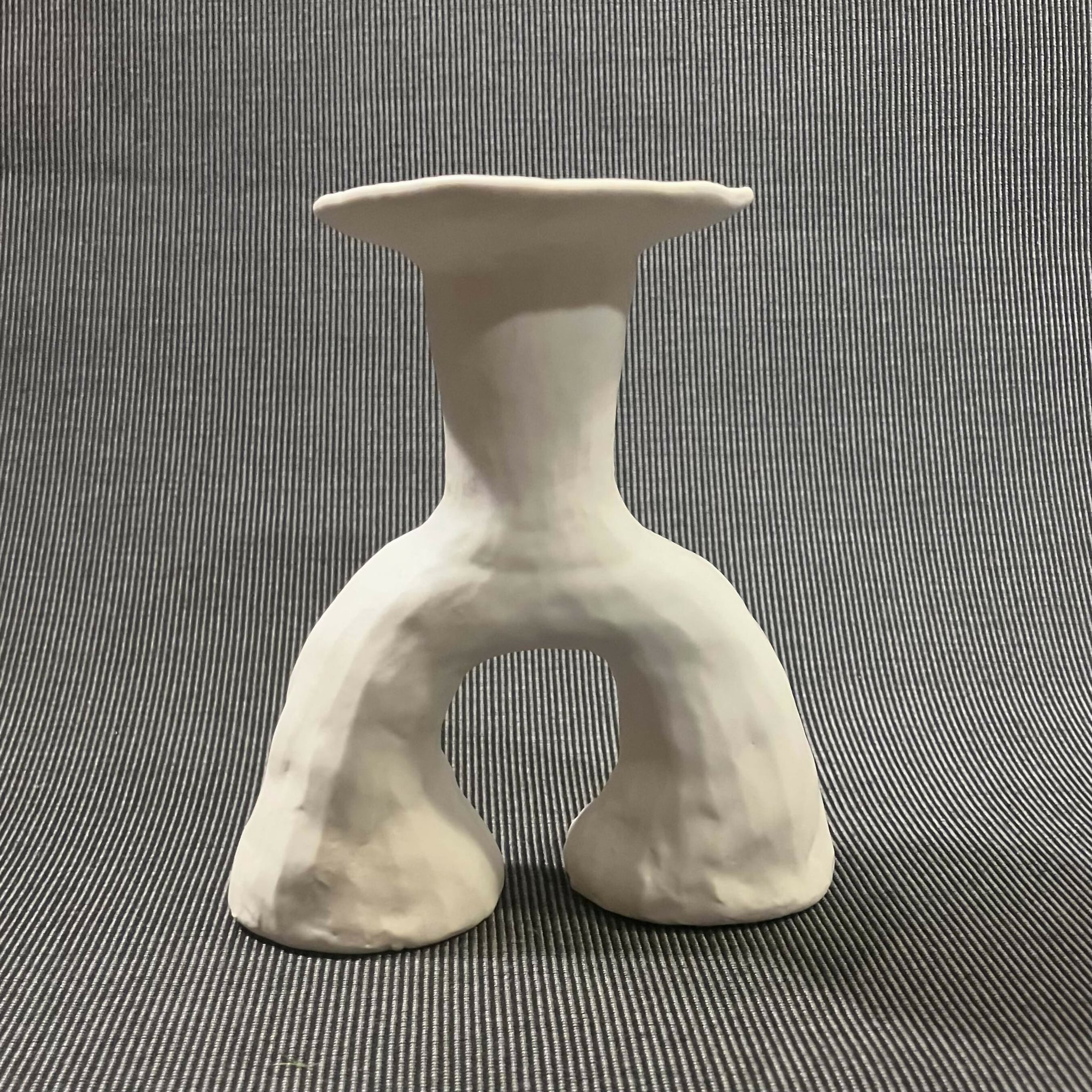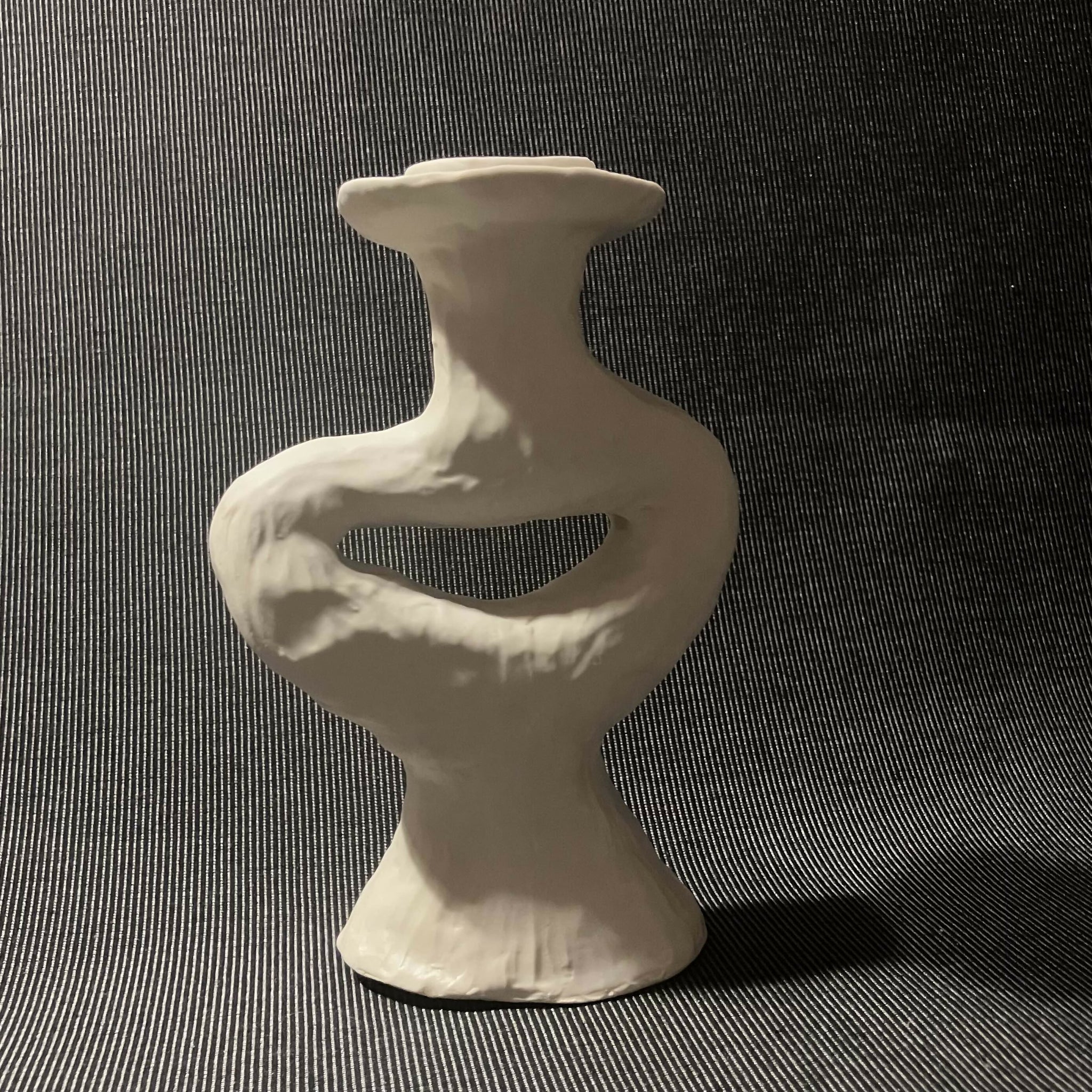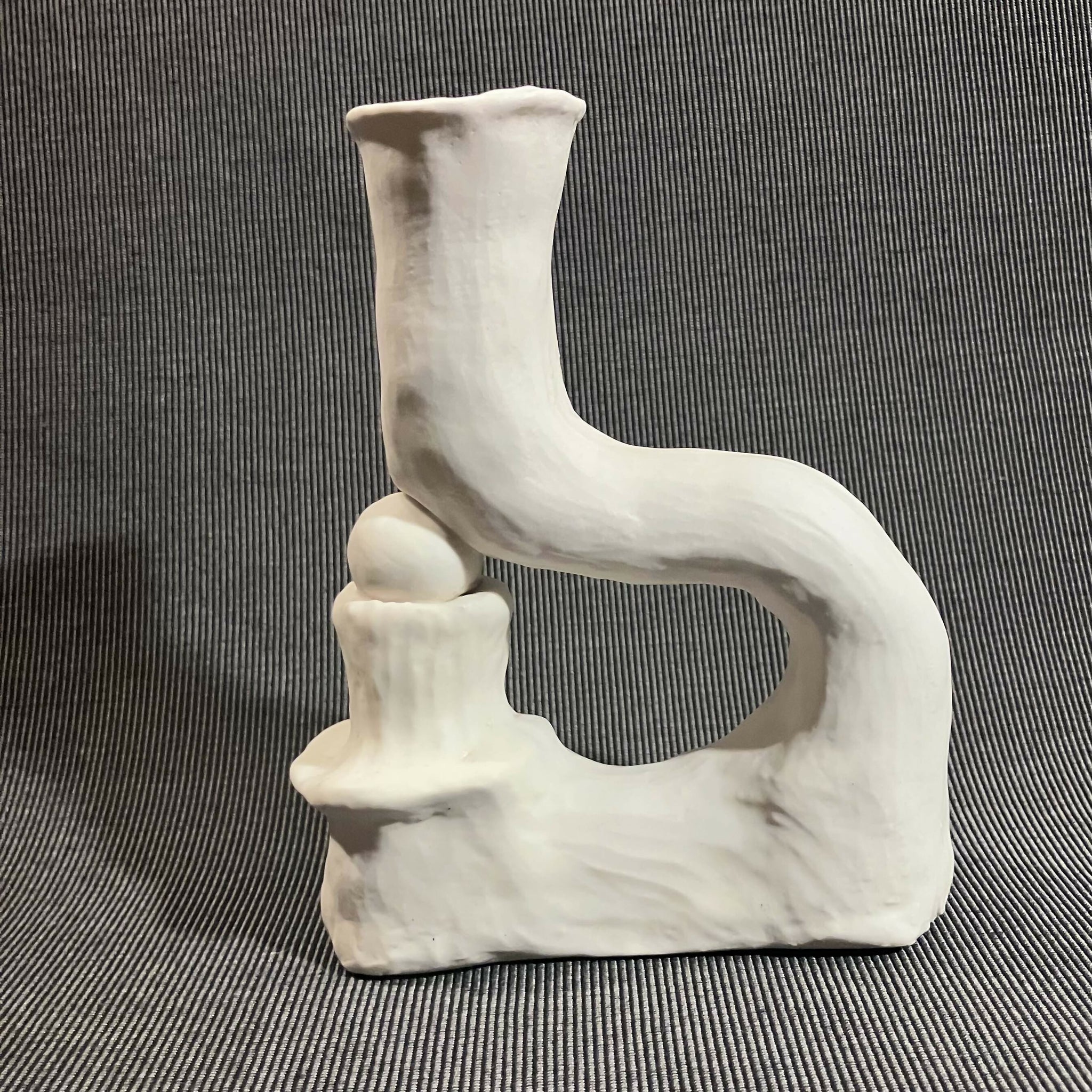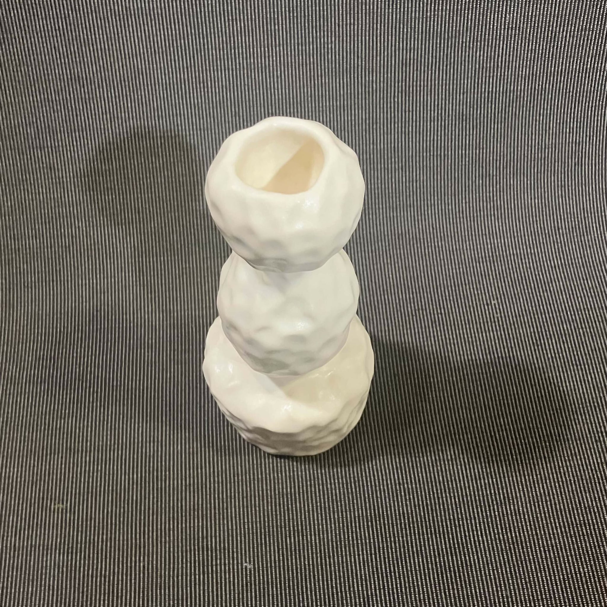 This hand made porcelain candlestick is one-of-a-kind. It is 6.5 inches tall, 4.5 inches wide, and 2 inches deep. The piece is glazed with a matte white glaze that adds a softness that encourages touch. I call my candlesticks "Still Life Candlesticks" because they inspire arrangements that are unique, artful, and worthy of a painting. Each candlestick will hold a typically sized candle taper.