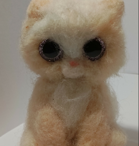This is a needle felted cream colored kitten made as a keychain with light pink sparkle eyes crafted handmade with %100 lamb wool Size:3x2.5 No two are the same!
