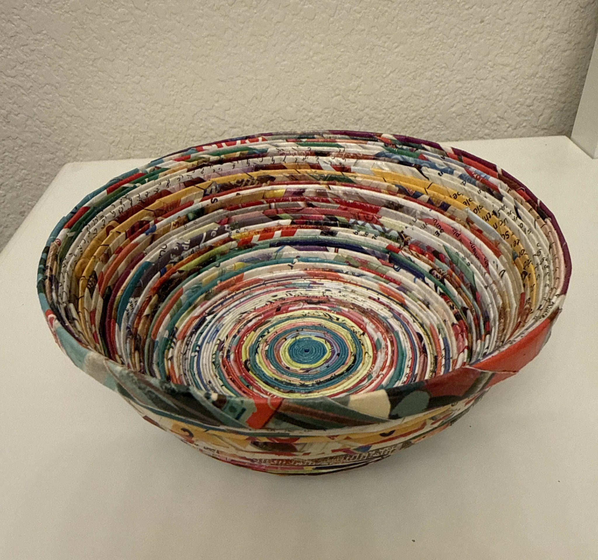 At Paper Zen’s you will see different technique using on paper: weaving, rolled coiled, and paper mache baskets. She prefers to use the original paper without using dye or paint because she wants to create beauty from its original form. This allows her to transform the actual pages from the magazine, newspaper, and other forms of paper into passionate works of art.